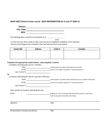 SNAP SHOT (Point in time count) ‐ NSLP INFORMATION for E‐rate FY 2020‐21