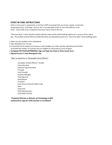 Point in time count is required for a site that is NOT associated with any of your regular school sites