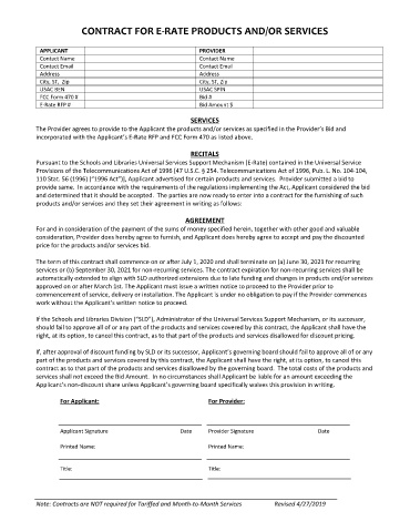 CONTRACT FOR E-RATE PRODUCTS AND/OR SERVICES