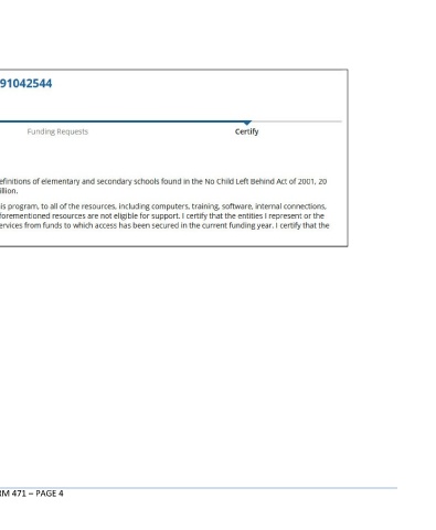 CERTIFY FCC FORM 471 – PAGE 4 7. Check the boxes under Applicant Certifications.