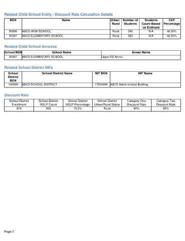 Related Child School Entity - Discount Rate Calculation Details