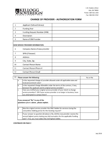 CHANGE OF PROVIDER ‐ AUTHORIZATION FORM