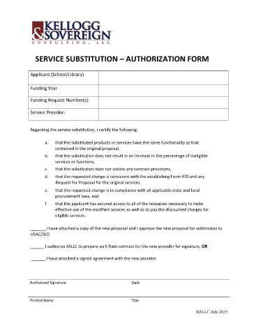 SERVICE SUBSTITUTION – AUTHORIZATION FORM