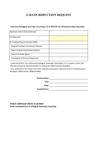 E-RATE REDUCTION REQUEST