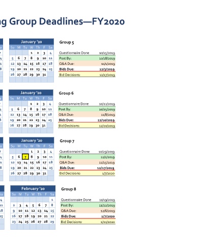 Group 5 Post By: Q&A Due: Bids Due: Bid Decisions: Group 6 Post By: Q&A Due: Bids Due: Bid Decisions: Group 7 Post By: Q&A Due: Bids Due: Bid Decisions: Group 8 Post By: Q&A Due: Bids Due: