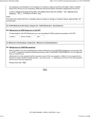 RFP QUESTIONNAIRE - SAMPLE COMPLETED - Page 9