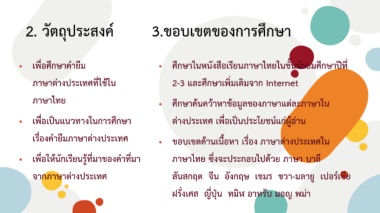 เรื่องค ายืมภาษาต่างประเทศ                      ⦁ ขอบเขตด้านเนื้อหา เรื่อง ภาษาต่างประเทศใน