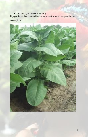 ✓ Tabaco (Nicotiana tabacum) El jugo de las hojas es utilizado para contrarrestar los problemas neurálgicos. 5