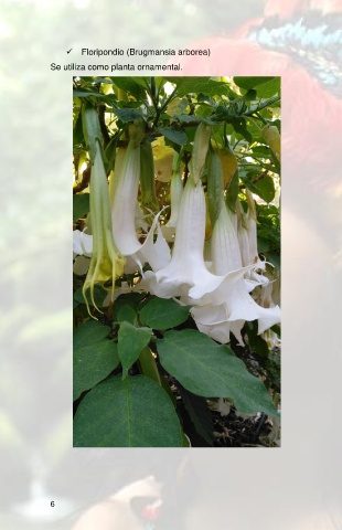 ✓ Floripondio (Brugmansia arborea) Se utiliza como planta ornamental. 6