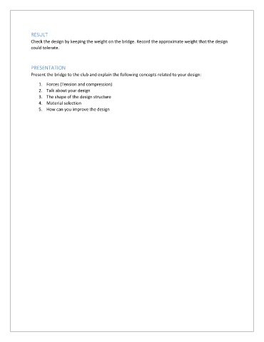 Check the design by keeping the weight on the bridge. Record the approximate weight that the design