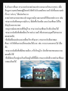 1.ด้านการศึกษา สามารถน าภาพถ่ายมาประกอบการเรียนการสอน เพื่อ