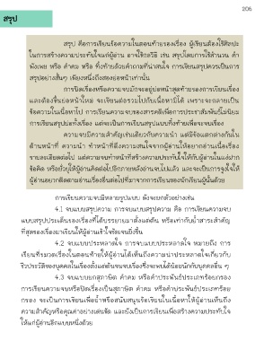 สรุป คือการเขียนข้อความในตอนท้ายของเรื่อง ผู้เขียนต้องใช้ศิลปะ