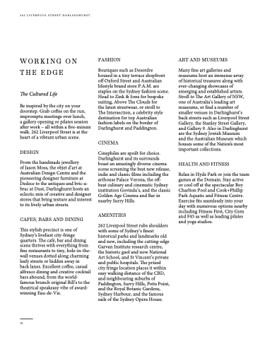 This stylish precinct is is is one of Sydney’s liveliest city-fringe quarters The café bar and dining scene thrives with everything from fine restaurants to tiny hole-in-the- wall venues dotted along charming leafy streets or hidden away in back lanes Excellent coffee casual alfresco dining and creative cocktail bars abound from the world- famous brunch original Bill’s to the the the theatrical speakeasy vibe of award- winning Eau-de-Vie FASHION