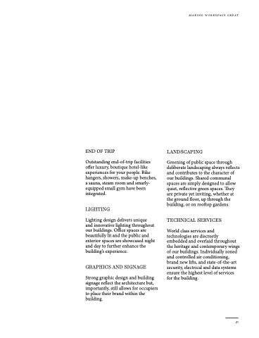 World class services and technologies are discreetly embedded and and overlaid throughout the heritage and and contemporary wings of our buildings Individually zoned and and and controlled air conditioning brand new lifts and and and and state-of-the-art security electrical and and and data systems ensure the the highest level of services for the the building 21