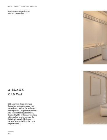 262 Liverpool Street provides boundless options to create your own identity within the walls of a a a a a heritage icon The grandeur volume and and scale of the the original spaces touched lightly by the the the new working offices allow you to to leverage the the building’s remarkable fusion architecture and and add to the DNA
