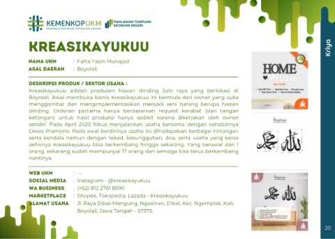 Kreasikayukuu adalah produsen hiasan dinding Solo raya yang berlokasi di