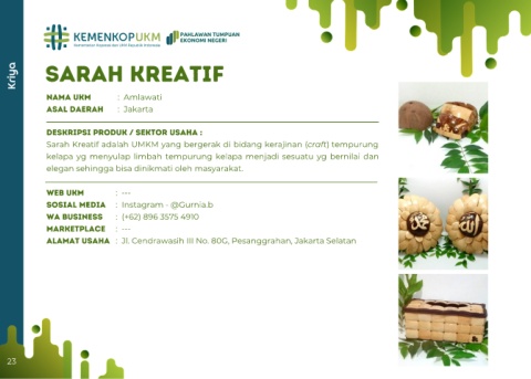 Sarah Kreatif adalah UMKM yang bergerak di bidang kerajinan (craft) tempurung