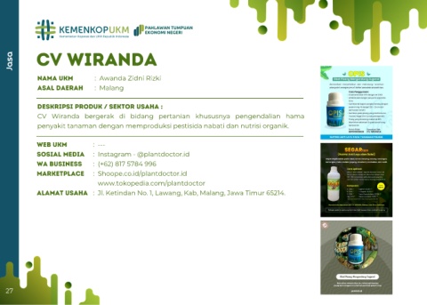 CV Wiranda bergerak di bidang pertanian khususnya pengendalian hama