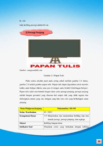 Jadi, keliling persegi adalah 64 cm