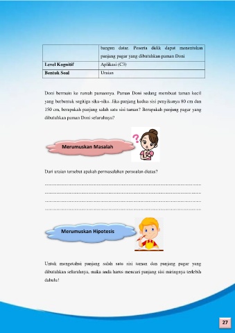 Untuk mengetahui panjang salah satu sisi taman dan panjang pagar yang