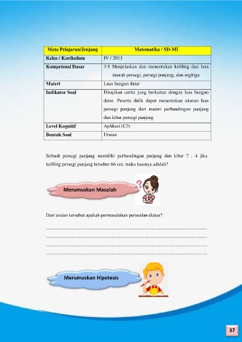 Indikator Soal Disajikan cerita yang berkaitan dengan luas bangun