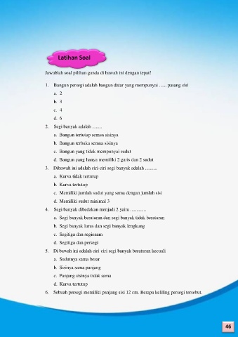3. Dibawah ini adalah ciri-ciri segi banyak adalah ..........