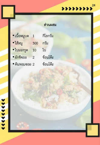 24 ส่วนผสม •เนื้อหมูบด 1 กิโลกรัม •ไส้หมู 300 กรัม •ใบมะกรูด 10 ใบ •ผักชีซอย 2 ช้อนโต๊ะ •ต้นหอมซอย 2 ช้อนโต๊ะ