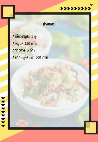 36 ส่วนผสม •เลือดหมูสด 1 ถุง •หมูบด 250 กรัม •ข้าวสวย 3 ถ้วย •กากหมูติดหนัง 300 กรัม