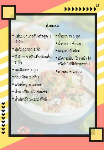 •ถั่วฝักยาว (หักเป็นท่อนสั้น) •เม็ดกระถิน (โรยหน้า ใส่