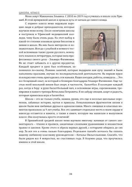 Меня зовут Маннанова Эльвина. С 2010 по 2019 год я училась в школе села При-