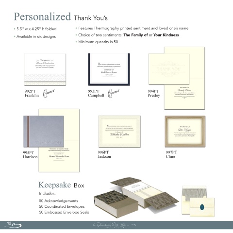 • Available in six designs • Choice of two sentiments: The Family of or Your Kindness