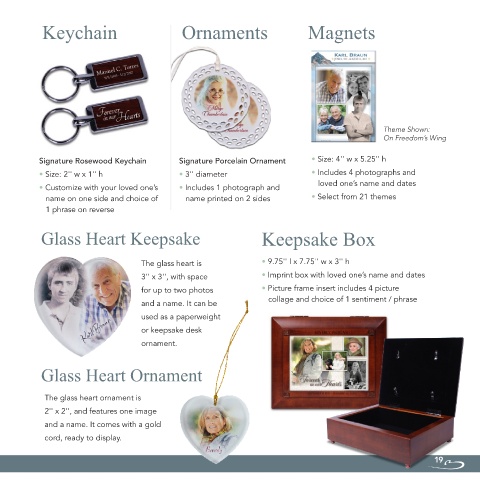 3'' x 3'', with space • Imprint box with loved one’s name and dates