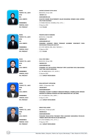 PEMBIMBING : STEPHANI RAIHANA HAMDAN, S.PSI., M.PSI. | -