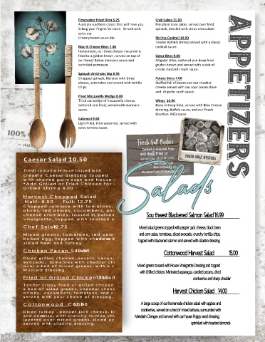 C o t t o n w o o d C o b b 12 .5 0 A large scoop of our homemade chicken salad with apples and
