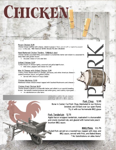 Mac N Cheese with Grilled Chicken 12.95 PORK