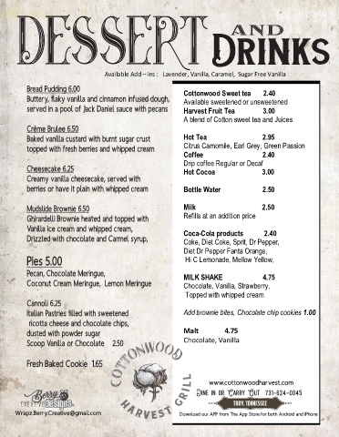 served in a pool of Jack Daniel sauce with pecans Harvest Fruit Tea 3.00