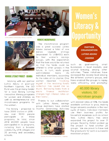 Women's Literacy Program / Uganda administered loans its activities. These initiatives have