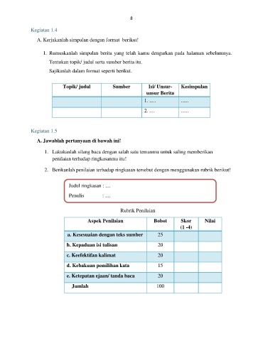 2. Berikanlah penilaian terhadap ringkasan tersebut dengan menggunakan rubrik berikut!