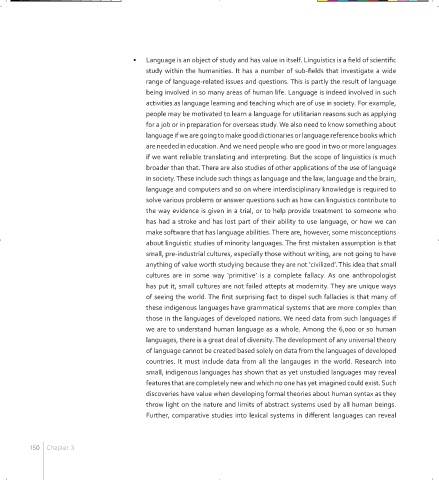 • Language is an object of study and has value in itself. Linguistics is a field of scientific