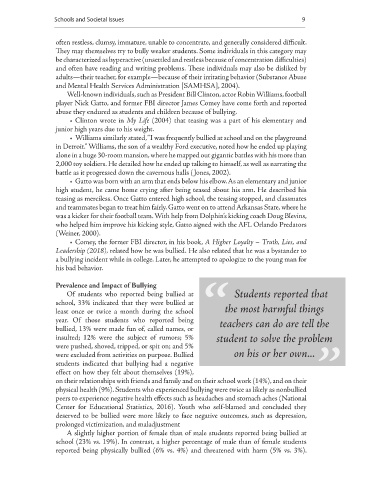 physical health (9%). Students who experienced bullying were twice as likely as nonbullied