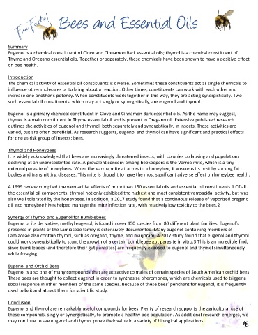 Eugenol and thymol are remarkably useful compounds for bees. Plenty of research supports the agricultural use of