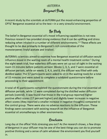 doTERRA’s scientists aimed to examine how Bergamot essential oil diffusion would