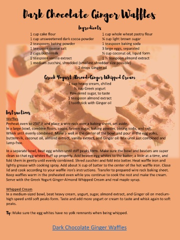 Serve with the Greek Yogurt Ginger-Almond Whipped Cream and real maple syrup.