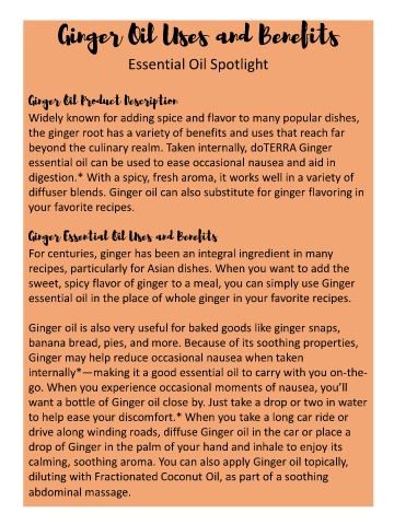 diffuser blends. Ginger oil can also substitute for ginger flavoring in