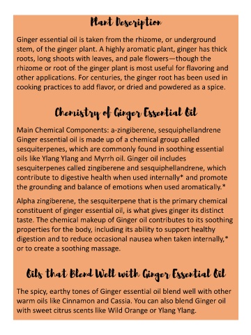 taste. The chemical makeup of Ginger oil contributes to its soothing