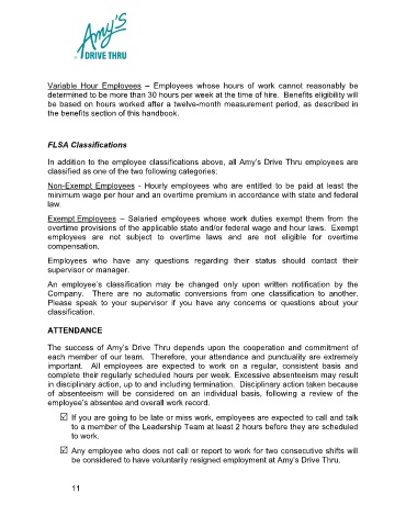 In addition to the employee classifications above, all Amy’s Drive Thru employees are