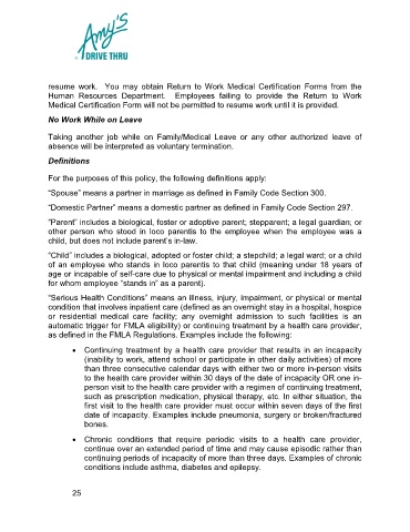 Medical Certification Form will not be permitted to resume work until it is provided.