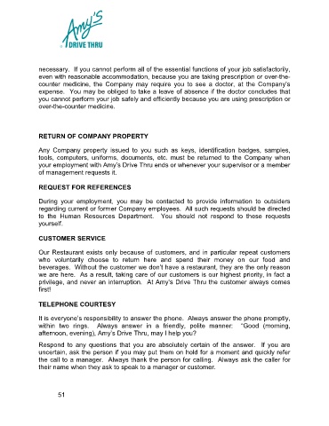 necessary. If you cannot perform all of the essential functions of your job satisfactorily,