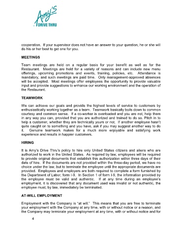 It is Amy’s Drive Thru’s policy to hire only United States citizens and aliens who are
