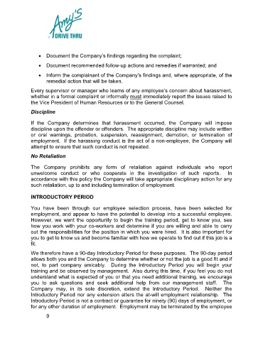 employment. If the harassing conduct is the act of a non-employee, the Company will